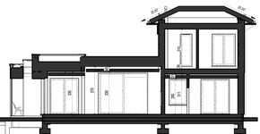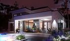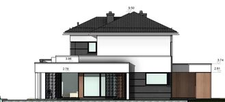 Technologia: silka + wełna, stropy monolityczne żelbetowe. Wykończenie elewacji - beton architektoniczny, okładzina HPL. Ogrzewanie gazowe, wentylacja z rekuperacją, ogrzewanie podłogowe, jacuzzi w ogrodzie, sauna infrared, 2 kominki - w salonie i w głównej sypialni. Projekt dostępny także w wersji na paliwo stałe