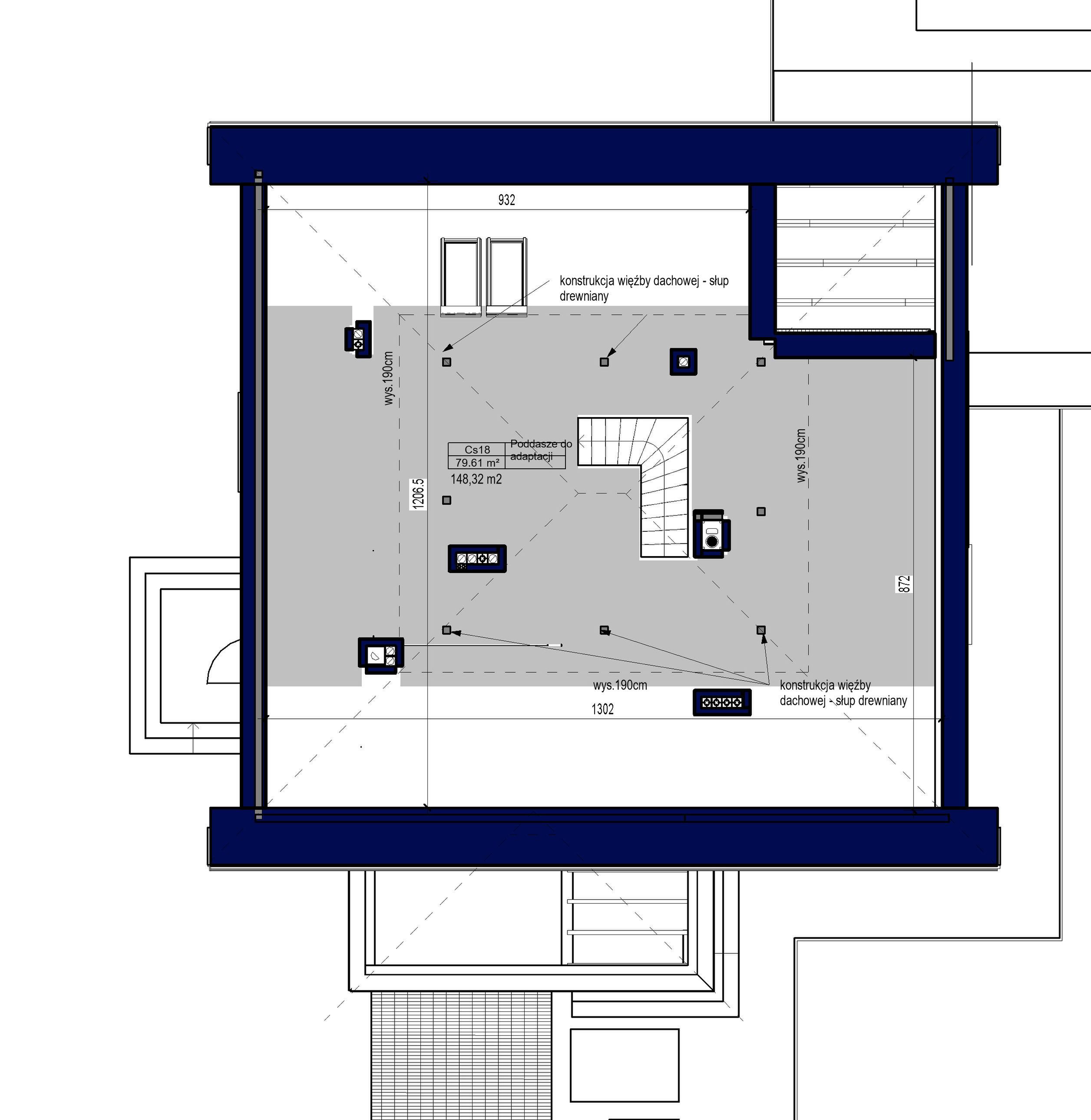 Graficzne opracowanie rzutów poglądowych widocznych na karcie projektu zostało wykonane przez Extradom.pl. Prezentowane przez Extradom.pl wizualizacje wykonane zostały przez autora projektu i należy poczytywać je jedynie za przykład i propozycję wykończenia, wizję architektoniczną autora projektu. Ostateczne wykończenie budynku może nastąpić na wiele sposobów. Szczegółowe rozwiązania zastosowane w oferowanej dokumentacji - w tym również ilość, lokalizacje i wygląd okien, drzwi, kominów - mogą w niewielkim stopniu różnić się od prezentowanej wizualizacji budynku.