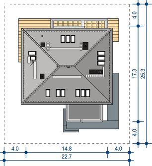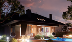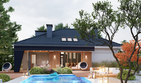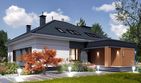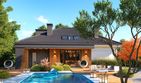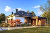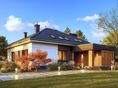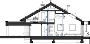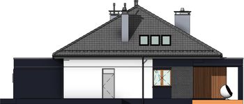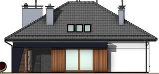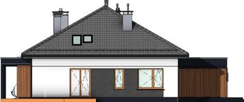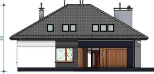 Graficzne opracowanie rzutów poglądowych widocznych na karcie projektu zostało wykonane przez Extradom.pl. Prezentowane przez Extradom.pl wizualizacje wykonane zostały przez autora projektu i należy poczytywać je jedynie za przykład i propozycję wykończenia, wizję architektoniczną autora projektu. Ostateczne wykończenie budynku może nastąpić na wiele sposobów. Szczegółowe rozwiązania zastosowane w oferowanej dokumentacji - w tym również ilość, lokalizacje i wygląd okien, drzwi, kominów - mogą w niewielkim stopniu różnić się od prezentowanej wizualizacji budynku.