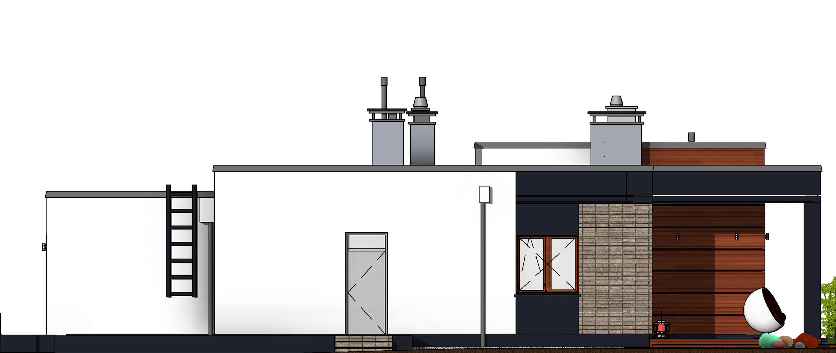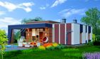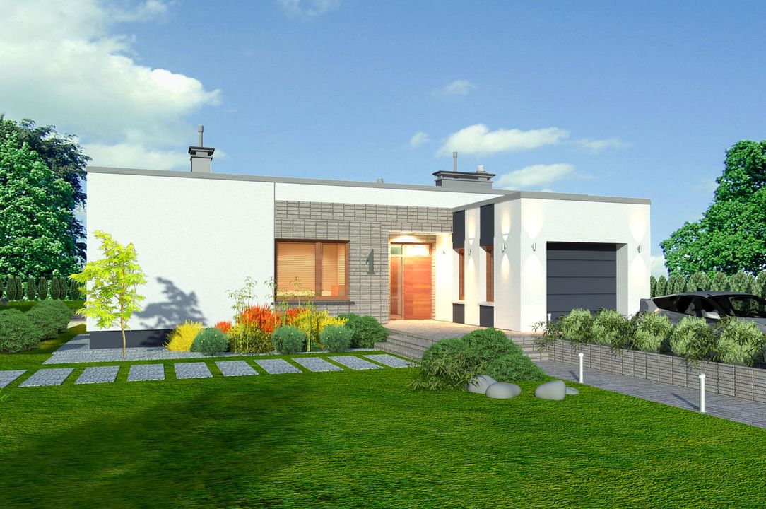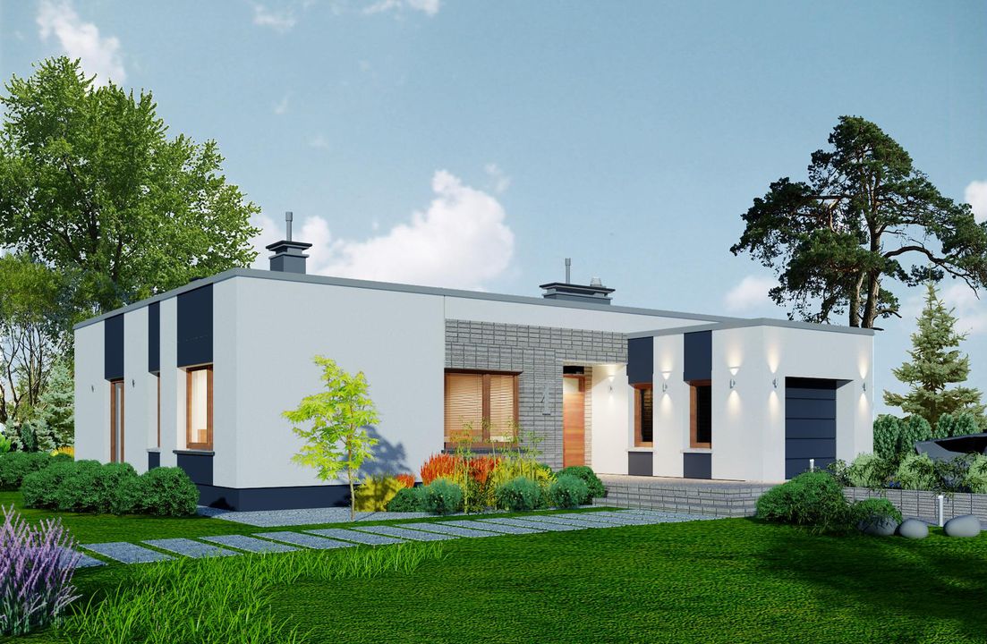 Graficzne opracowanie rzutów poglądowych widocznych na karcie projektu zostało wykonane przez Extradom.pl. Prezentowane przez Extradom.pl wizualizacje wykonane zostały przez autora projektu i należy poczytywać je jedynie za przykład i propozycję wykończenia, wizję architektoniczną autora projektu. Ostateczne wykończenie budynku może nastąpić na wiele sposobów. Szczegółowe rozwiązania zastosowane w oferowanej dokumentacji - w tym również ilość, lokalizacje i wygląd okien, drzwi, kominów - mogą w niewielkim stopniu różnić się od prezentowanej wizualizacji budynku.