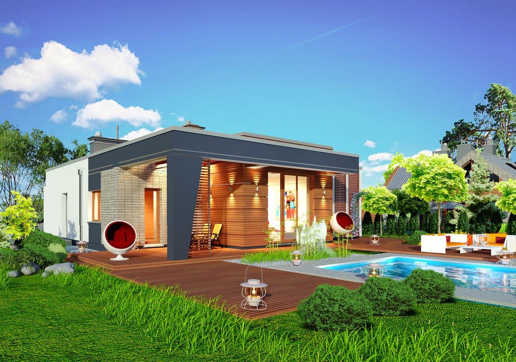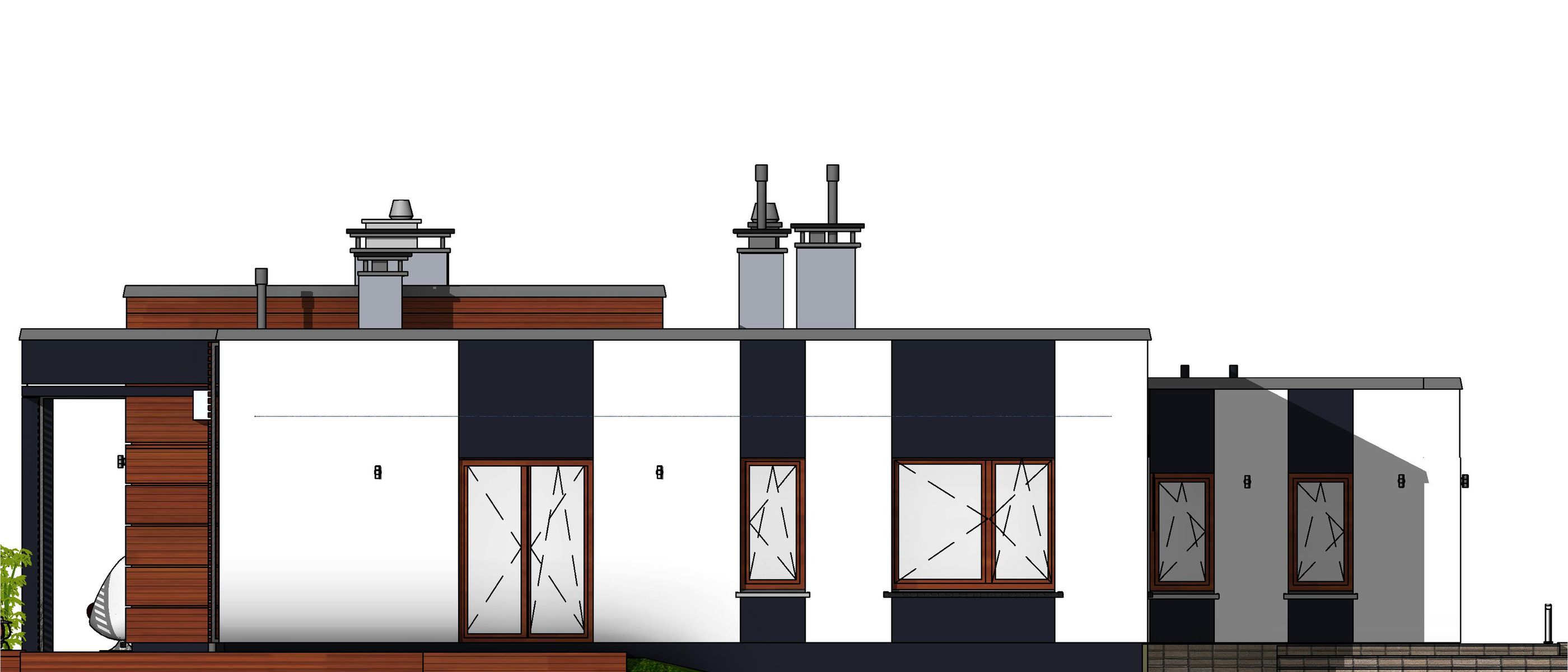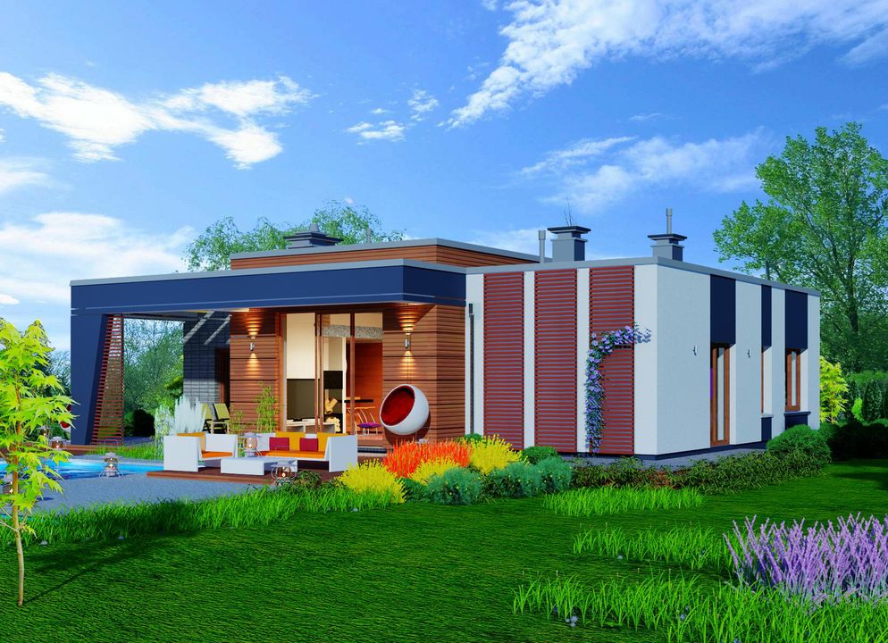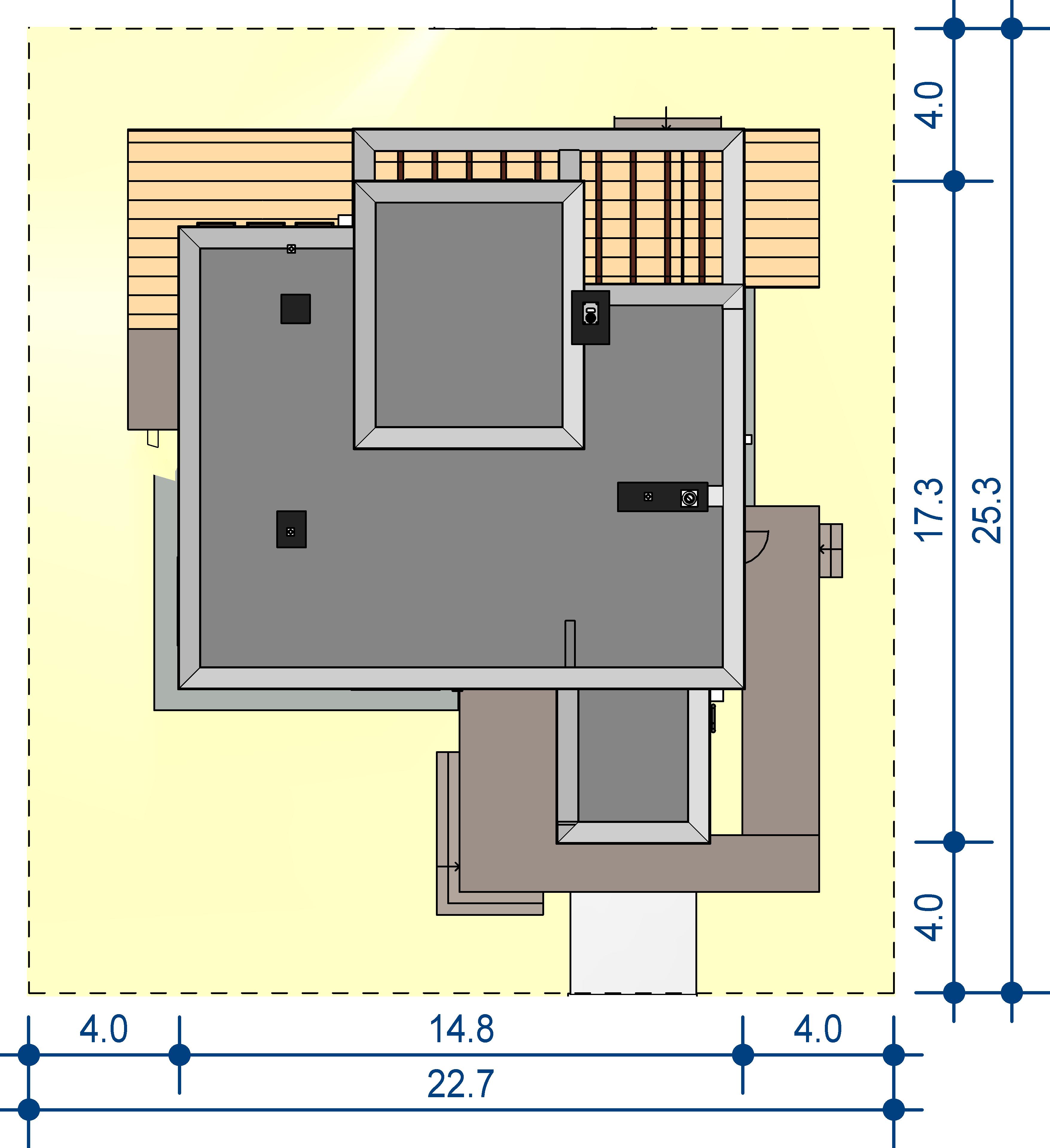 Graficzne opracowanie rzutów poglądowych widocznych na karcie projektu zostało wykonane przez Extradom.pl. Prezentowane przez Extradom.pl wizualizacje wykonane zostały przez autora projektu i należy poczytywać je jedynie za przykład i propozycję wykończenia, wizję architektoniczną autora projektu. Ostateczne wykończenie budynku może nastąpić na wiele sposobów. Szczegółowe rozwiązania zastosowane w oferowanej dokumentacji - w tym również ilość, lokalizacje i wygląd okien, drzwi, kominów - mogą w niewielkim stopniu różnić się od prezentowanej wizualizacji budynku.