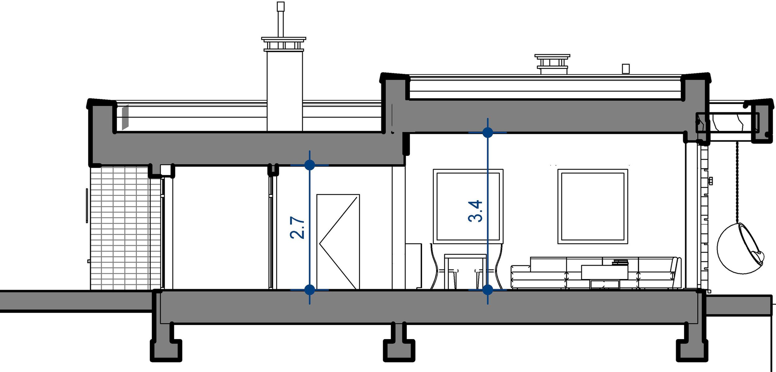 Ściany zewnętrzne tradycyjne murowane dwuwarstwowe - pustak ceramiczny 25cm i styropian. Strop gęstożebrowy. Dach: stropodach.
