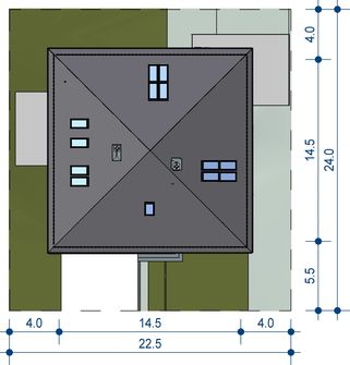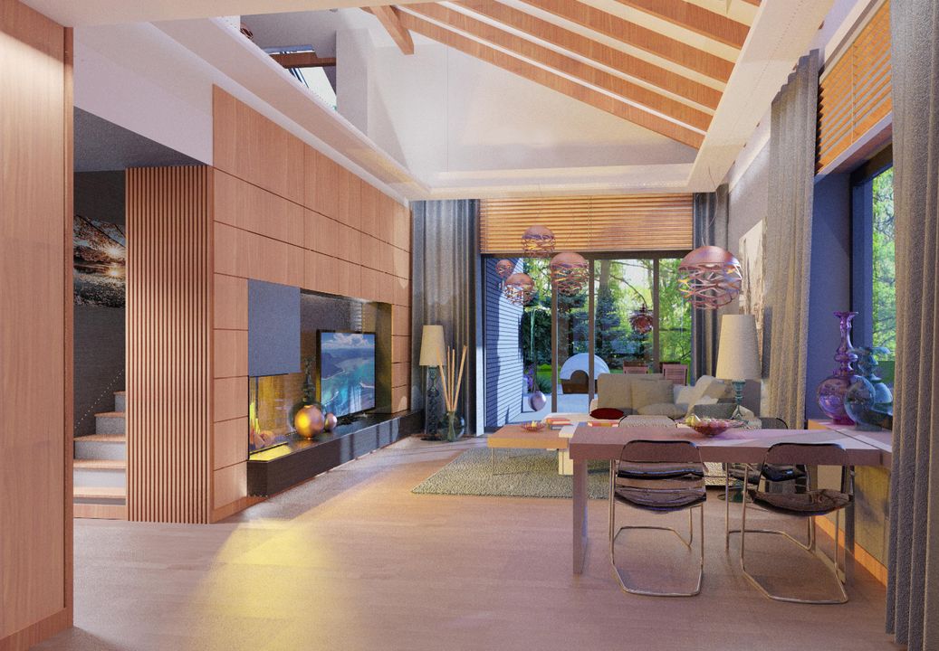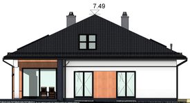 Graficzne opracowanie rzutów poglądowych widocznych na karcie projektu zostało wykonane przez Extradom.pl. Prezentowane przez Extradom.pl wizualizacje wykonane zostały przez autora projektu i należy poczytywać je jedynie za przykład i propozycję wykończenia, wizję architektoniczną autora projektu. Ostateczne wykończenie budynku może nastąpić na wiele sposobów. Szczegółowe rozwiązania zastosowane w oferowanej dokumentacji - w tym również ilość, lokalizacje i wygląd okien, drzwi, kominów - mogą w niewielkim stopniu różnić się od prezentowanej wizualizacji budynku.