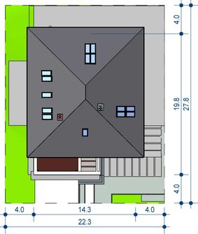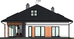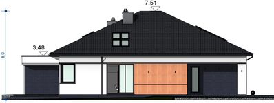 Graficzne opracowanie rzutów poglądowych widocznych na karcie projektu zostało wykonane przez Extradom.pl. Prezentowane przez Extradom.pl wizualizacje wykonane zostały przez autora projektu i należy poczytywać je jedynie za przykład i propozycję wykończenia, wizję architektoniczną autora projektu. Ostateczne wykończenie budynku może nastąpić na wiele sposobów. Szczegółowe rozwiązania zastosowane w oferowanej dokumentacji - w tym również ilość, lokalizacje i wygląd okien, drzwi, kominów - mogą w niewielkim stopniu różnić się od prezentowanej wizualizacji budynku.