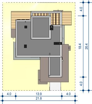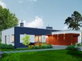 Graficzne opracowanie rzutów poglądowych widocznych na karcie projektu zostało wykonane przez Extradom.pl. Prezentowane przez Extradom.pl wizualizacje wykonane zostały przez autora projektu i należy poczytywać je jedynie za przykład i propozycję wykończenia, wizję architektoniczną autora projektu. Ostateczne wykończenie budynku może nastąpić na wiele sposobów. Szczegółowe rozwiązania zastosowane w oferowanej dokumentacji - w tym również ilość, lokalizacje i wygląd okien, drzwi, kominów - mogą w niewielkim stopniu różnić się od prezentowanej wizualizacji budynku.