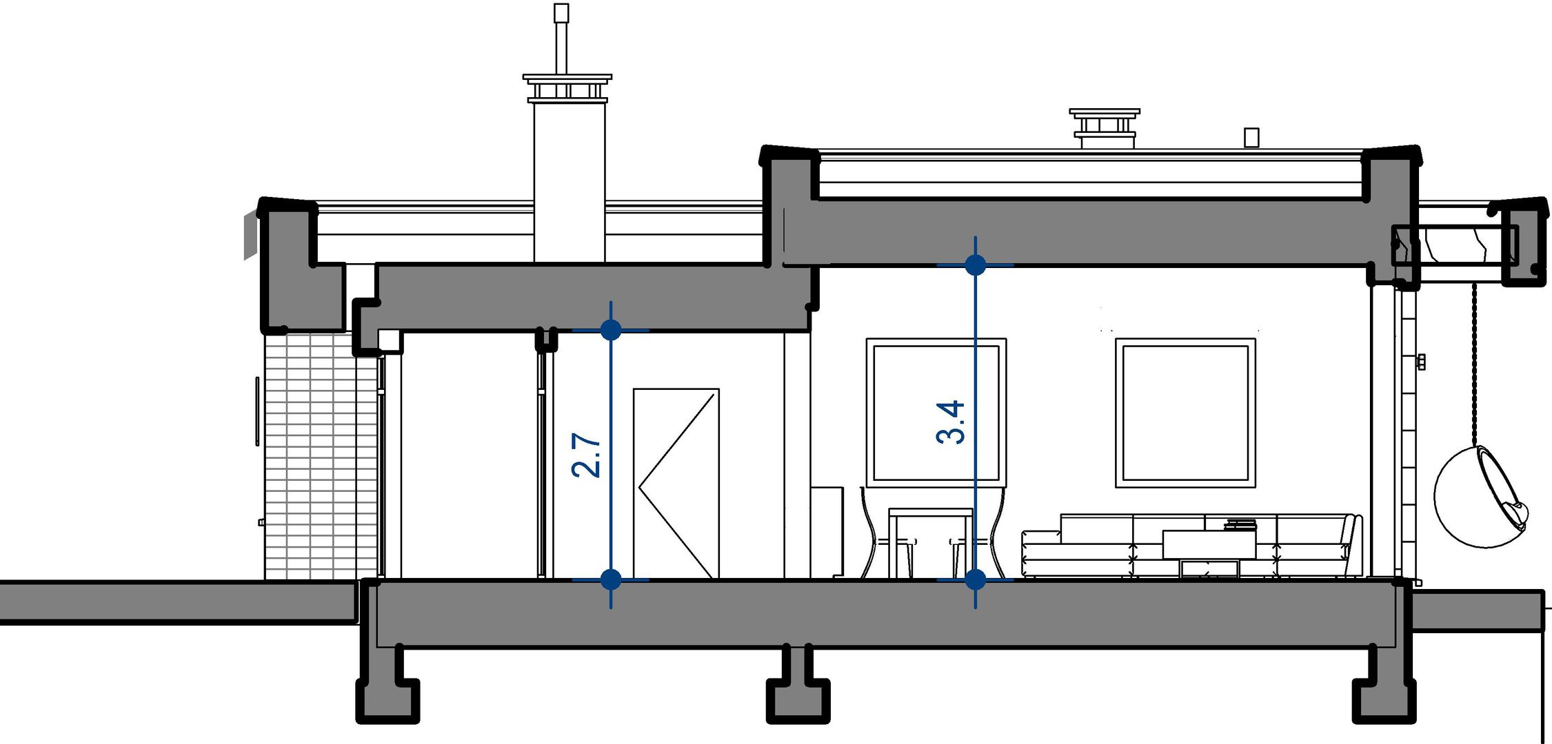 Ściany zewnętrzne tradycyjne murowane dwuwarstwowe - pustak ceramiczny 25 cm i styropian. Strop gęstożebrowy. Dach: stropodach.