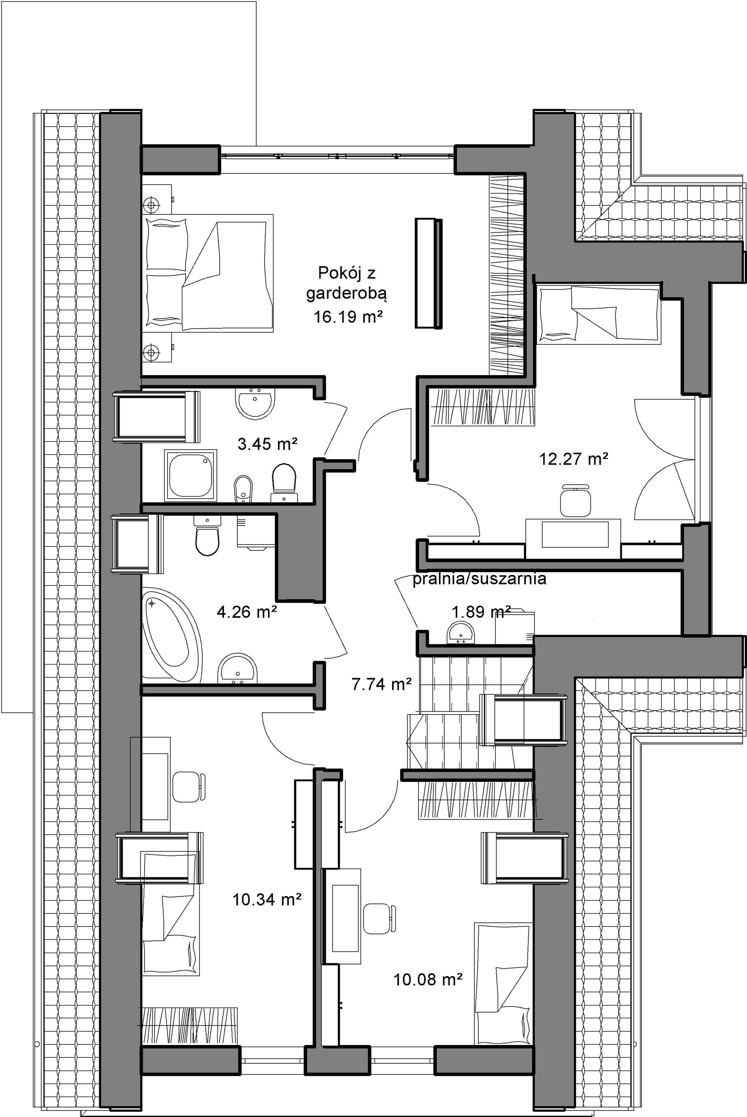 Uwaga! Powierzchnia użytkowa podana w dokumentacji projektowej może być mniejsza o ok. 3-4 mkw od podanej na stronie. Jest to związane wyłącznie ze zmianą sposobu liczenia pow. użytkowej. Wymiary budynku i jego forma nie ulegną zmianie. Zmiana dotyczy projektów dostosowanych do nowej formy dokumentacji 3+.