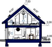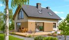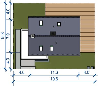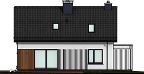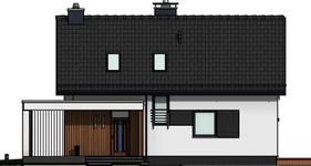Graficzne opracowanie rzutów poglądowych widocznych na karcie projektu zostało wykonane przez Extradom.pl. Prezentowane przez Extradom.pl wizualizacje wykonane zostały przez autora projektu i należy poczytywać je jedynie za przykład i propozycję wykończenia, wizję architektoniczną autora projektu. Ostateczne wykończenie budynku może nastąpić na wiele sposobów. Szczegółowe rozwiązania zastosowane w oferowanej dokumentacji - w tym również ilość, lokalizacje i wygląd okien, drzwi, kominów - mogą w niewielkim stopniu różnić się od prezentowanej wizualizacji budynku.
