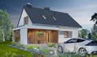 Graficzne opracowanie rzutów poglądowych widocznych na karcie projektu zostało wykonane przez Extradom.pl. Prezentowane przez Extradom.pl wizualizacje wykonane zostały przez autora projektu i należy poczytywać je jedynie za przykład i propozycję wykończenia, wizję architektoniczną autora projektu. Ostateczne wykończenie budynku może nastąpić na wiele sposobów. Szczegółowe rozwiązania zastosowane w oferowanej dokumentacji - w tym również ilość, lokalizacje i wygląd okien, drzwi, kominów - mogą w niewielkim stopniu różnić się od prezentowanej wizualizacji budynku.