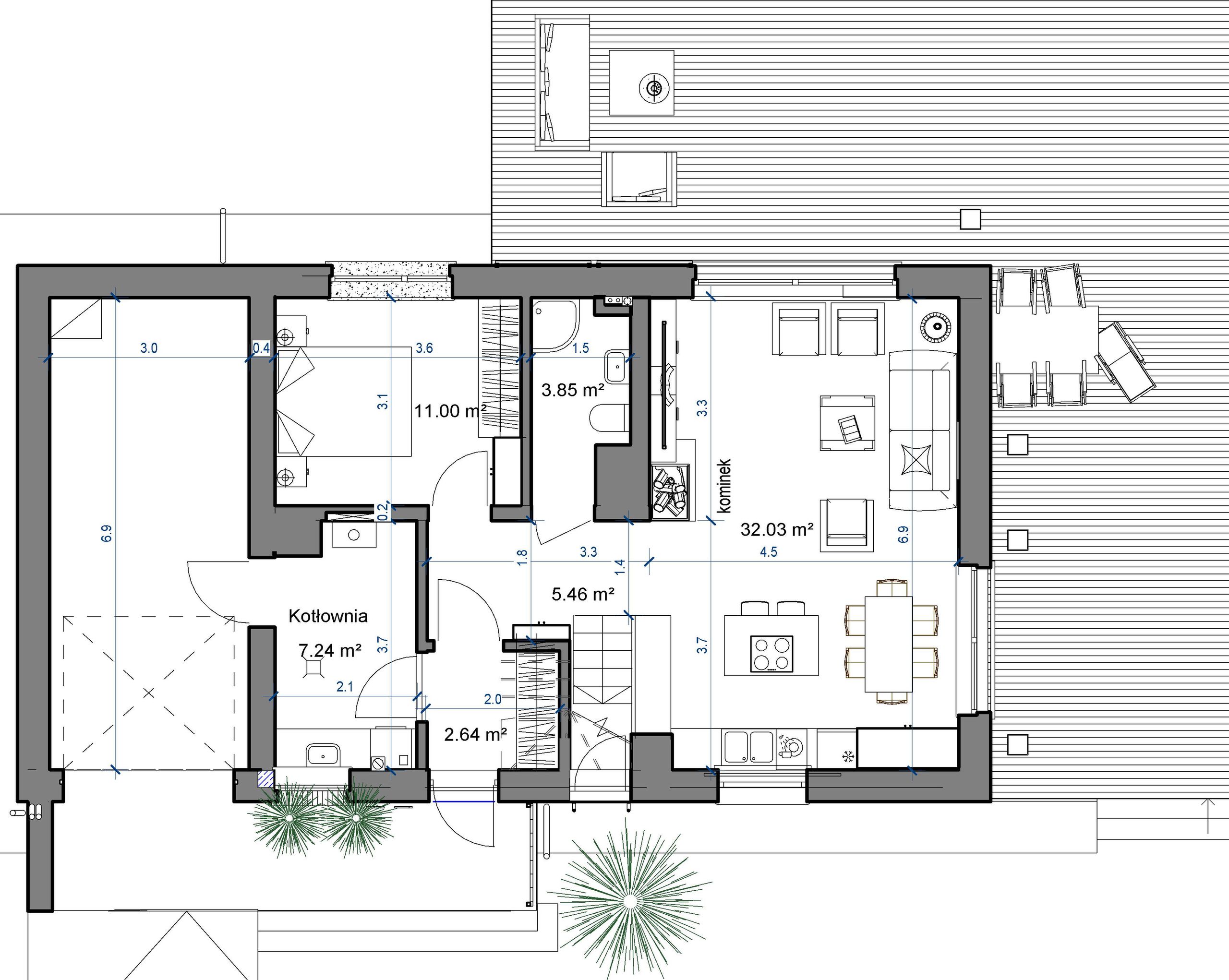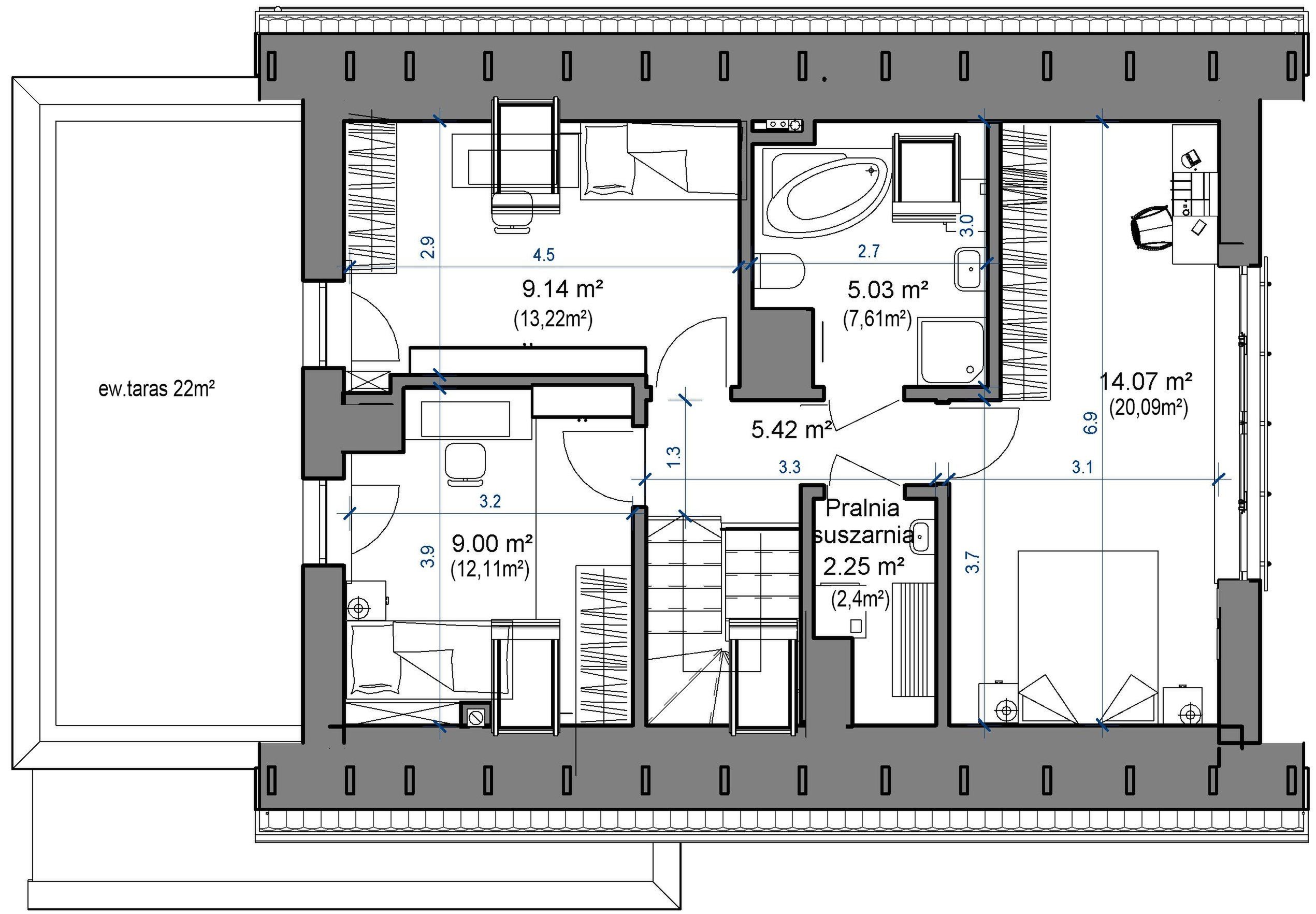 Ze względu na dostosowanie projektu do aktualnych norm wymiary budynku mogą ulec zmianie.