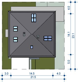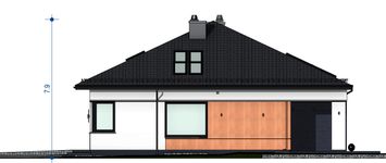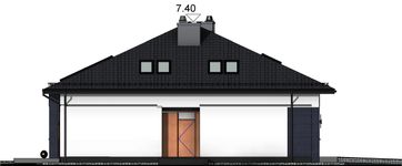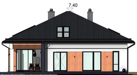 Graficzne opracowanie rzutów poglądowych widocznych na karcie projektu zostało wykonane przez Extradom.pl. Prezentowane przez Extradom.pl wizualizacje wykonane zostały przez autora projektu i należy poczytywać je jedynie za przykład i propozycję wykończenia, wizję architektoniczną autora projektu. Ostateczne wykończenie budynku może nastąpić na wiele sposobów. Szczegółowe rozwiązania zastosowane w oferowanej dokumentacji - w tym również ilość, lokalizacje i wygląd okien, drzwi, kominów - mogą w niewielkim stopniu różnić się od prezentowanej wizualizacji budynku.