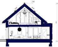 Graficzne opracowanie rzutów poglądowych widocznych na karcie projektu zostało wykonane przez Extradom.pl. Prezentowane przez Extradom.pl wizualizacje wykonane zostały przez autora projektu i należy poczytywać je jedynie za przykład i propozycję wykończenia, wizję architektoniczną autora projektu. Ostateczne wykończenie budynku może nastąpić na wiele sposobów. Szczegółowe rozwiązania zastosowane w oferowanej dokumentacji - w tym również ilość, lokalizacje i wygląd okien, drzwi, kominów - mogą w niewielkim stopniu różnić się od prezentowanej wizualizacji budynku.