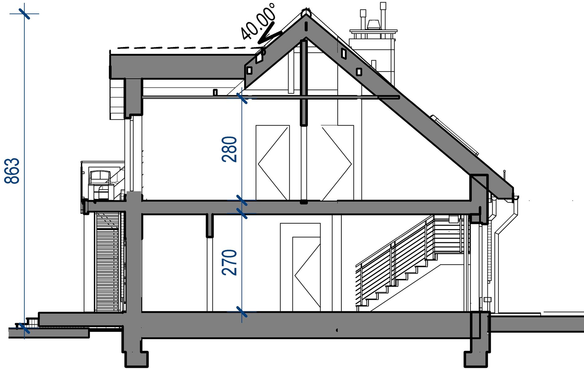 Ściany murowane porotherm. Stropy gęstożebrowe. Schody monolityczne. Więźba drewniana. Projekt dostępny także w wersji na paliwo stałe