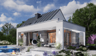 Graficzne opracowanie rzutów poglądowych widocznych na karcie projektu zostało wykonane przez Extradom.pl. Prezentowane przez Extradom.pl wizualizacje wykonane zostały przez autora projektu i należy poczytywać je jedynie za przykład i propozycję wykończenia, wizję architektoniczną autora projektu. Ostateczne wykończenie budynku może nastąpić na wiele sposobów. Szczegółowe rozwiązania zastosowane w oferowanej dokumentacji - w tym również ilość, lokalizacje i wygląd okien, drzwi, kominów - mogą w niewielkim stopniu różnić się od prezentowanej wizualizacji budynku.