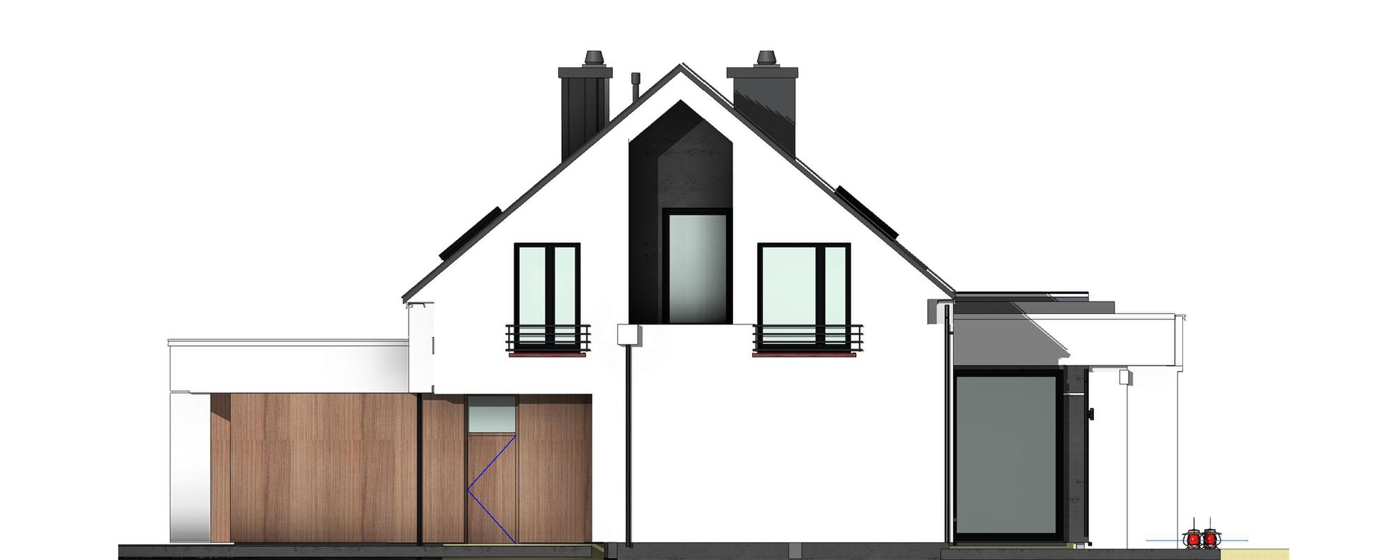 Ściany: murowane - Silka. Stropy: żelbetowe monolityczne. Schody: częściowo żelbetowe. Monolityczne, częściowo drewniane wspornikowe. Więźba - tradycyjna drewniana. Pokrycie dachu: blacha na rąbek stojący. Ogrzewanie gazowe. Wentylacja z rekuperacją. Ogrzewanie podłogowe / grzejniki. Elewacje tynkowane, częściowo obłożone betonem architektonicznym i okładziną elewacyjną HPL.