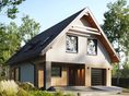 Dominik Prima to dom, który ma 114 m² - taki metraż sprawia, że komfortowo może w nim żyć pięcioosobowa rodzina. Na użytkowym poddaszu znajdują się aż cztery pokoje, a na parterze oprócz salonu zmieścił się jeszcze gabinet (który może pełnić funkcję pokoju gościnnego). Nie brakuje też pomieszczeń do magazynowania i prac gospodarczych – są tu spiżarnia, pralnia, wiatrołap, kotłownia i schowek, a także dodatkowe WC (oprócz łazienki na poddaszu). W projekcie tego liczącego 114 m² domu ciekawym architektonicznie pomysłem jest balkon. Dzięki temu, że jest on cofnięty w głąb budynku, znajdujący się nad nim dach osłania go od góry i od boków. Dzięki temu można na nim wypoczywać również w niepogodę