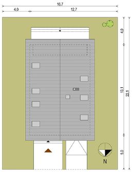 Graficzne opracowanie rzutów poglądowych widocznych na karcie projektu zostało wykonane przez Extradom.pl. Prezentowane przez Extradom.pl wizualizacje wykonane zostały przez autora projektu i należy poczytywać je jedynie za przykład i propozycję wykończenia, wizję architektoniczną autora projektu. Ostateczne wykończenie budynku może nastąpić na wiele sposobów. Szczegółowe rozwiązania zastosowane w oferowanej dokumentacji - w tym również ilość, lokalizacje i wygląd okien, drzwi, kominów - mogą w niewielkim stopniu różnić się od prezentowanej wizualizacji budynku.