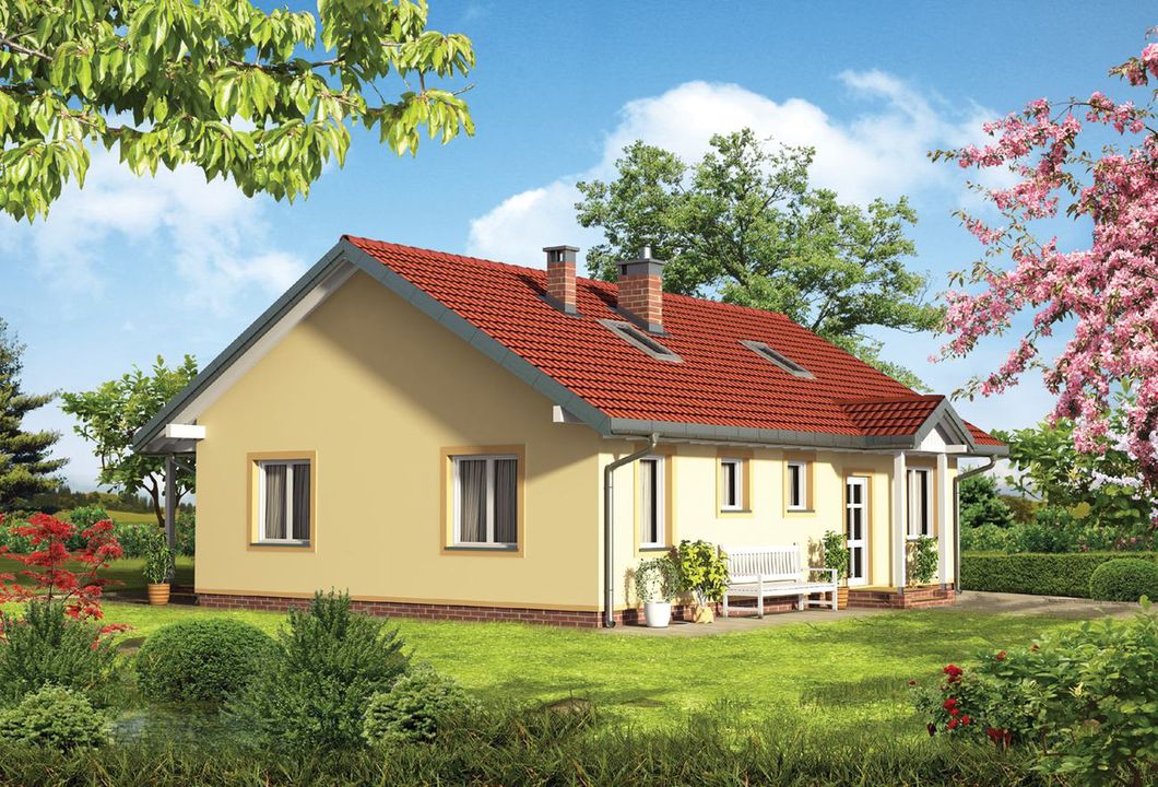 Graficzne opracowanie rzutów poglądowych widocznych na karcie projektu zostało wykonane przez Extradom.pl. Prezentowane przez Extradom.pl wizualizacje wykonane zostały przez autora projektu i należy poczytywać je jedynie za przykład i propozycję wykończenia, wizję architektoniczną autora projektu. Ostateczne wykończenie budynku może nastąpić na wiele sposobów. Szczegółowe rozwiązania zastosowane w oferowanej dokumentacji - w tym również ilość, lokalizacje i wygląd okien, drzwi, kominów - mogą w niewielkim stopniu różnić się od prezentowanej wizualizacji budynku.