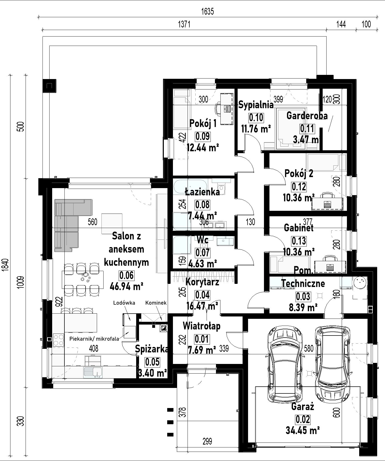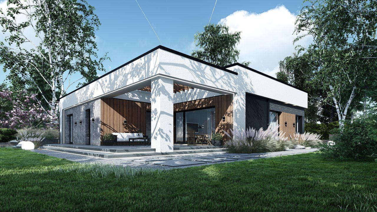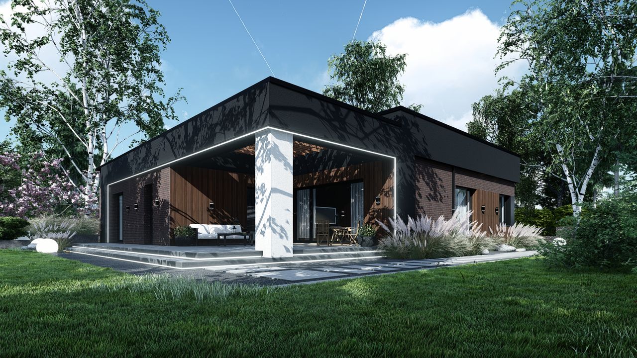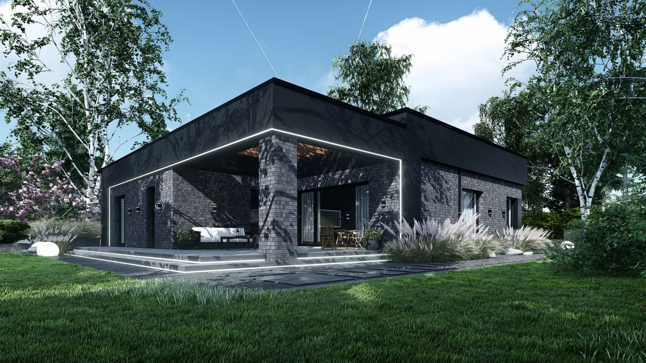 Technologia budowy: fundamenty: tradycyjne – ławy i stopy fundamentowe, ściany zewnętrzne: gazobeton + styropian 20 cm, elewacja: tynk biały, tynk czarny, deska elewacyjna, cegła, beton architektoniczny, strop: drewniany, konstrukcja dachu: pokrycie dachówką lub blachą na rąbek, ogrzewanie: powietrzna pompa ciepła o mocy 6–7 kW typu powietrze–woda z ogrzewaniem podłogowym, wentylacja: mechaniczna.