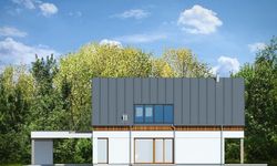 Graficzne opracowanie rzutów poglądowych widocznych na karcie projektu zostało wykonane przez Extradom.pl. Prezentowane przez Extradom.pl wizualizacje wykonane zostały przez autora projektu i należy poczytywać je jedynie za przykład i propozycję wykończenia, wizję architektoniczną autora projektu. Ostateczne wykończenie budynku może nastąpić na wiele sposobów. Szczegółowe rozwiązania zastosowane w oferowanej dokumentacji - w tym również ilość, lokalizacje i wygląd okien, drzwi, kominów - mogą w niewielkim stopniu różnić się od prezentowanej wizualizacji budynku.