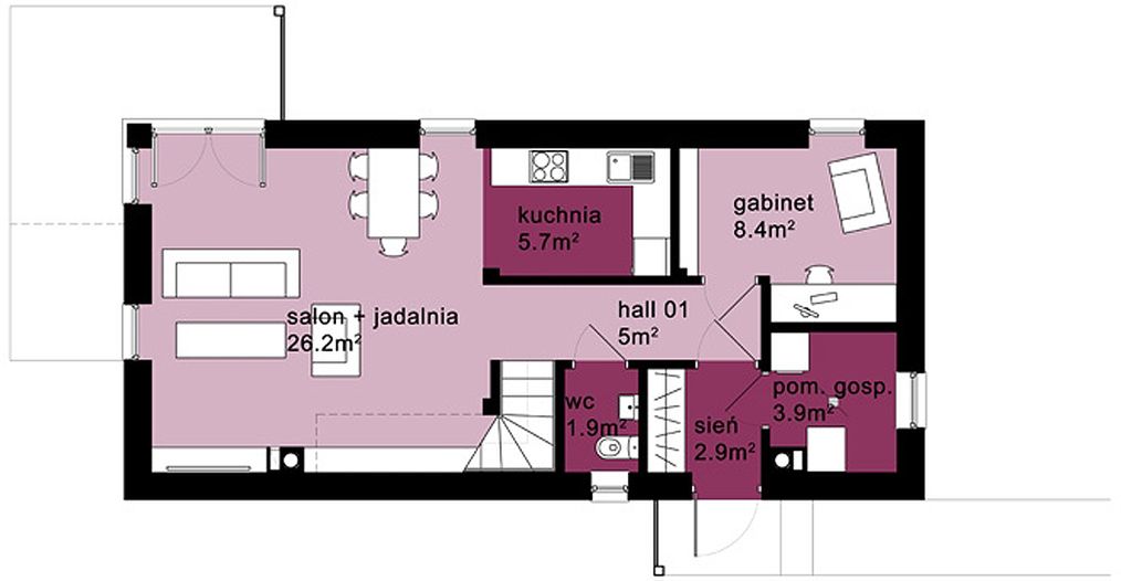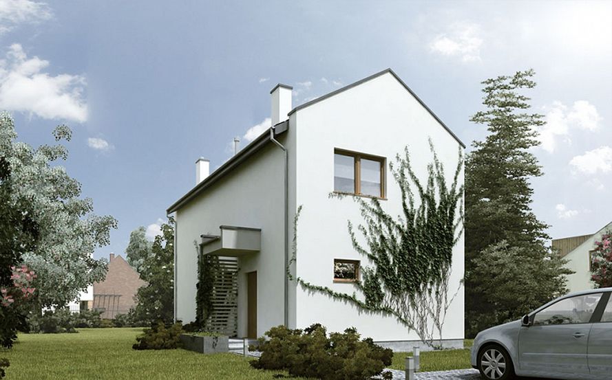Graficzne opracowanie rzutów poglądowych widocznych na karcie projektu zostało wykonane przez Extradom.pl. Prezentowane przez Extradom.pl wizualizacje wykonane zostały przez autora projektu i należy poczytywać je jedynie za przykład i propozycję wykończenia, wizję architektoniczną autora projektu. Ostateczne wykończenie budynku może nastąpić na wiele sposobów. Szczegółowe rozwiązania zastosowane w oferowanej dokumentacji - w tym również ilość, lokalizacje i wygląd okien, drzwi, kominów - mogą w niewielkim stopniu różnić się od prezentowanej wizualizacji budynku.
