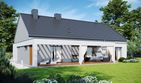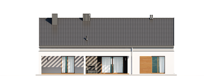 Graficzne opracowanie rzutów poglądowych widocznych na karcie projektu zostało wykonane przez Extradom.pl. Prezentowane przez Extradom.pl wizualizacje wykonane zostały przez autora projektu i należy poczytywać je jedynie za przykład i propozycję wykończenia, wizję architektoniczną autora projektu. Ostateczne wykończenie budynku może nastąpić na wiele sposobów. Szczegółowe rozwiązania zastosowane w oferowanej dokumentacji - w tym również ilość, lokalizacje i wygląd okien, drzwi, kominów - mogą w niewielkim stopniu różnić się od prezentowanej wizualizacji budynku.