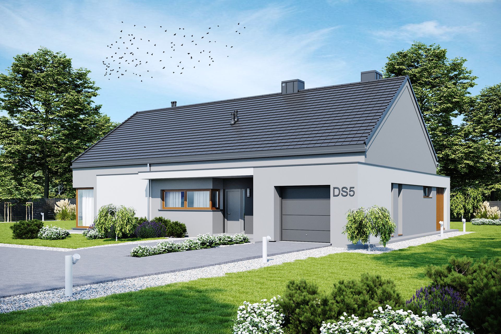 DomStudio 05 to nowoczesny dom parterowy z jednostanowiskowym garażem, zaprojektowany z myślą o komforcie 3- lub 4-osobowej rodziny. Jego funkcjonalny układ na jednym poziomie łączy otwartą przestrzeń dzienną z wygodną strefą prywatną, oferując idealne warunki do życia i odpoczynku.