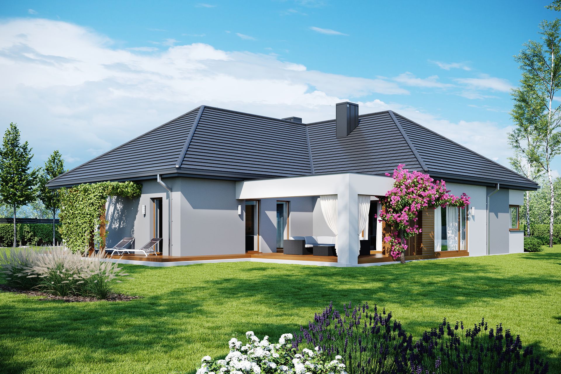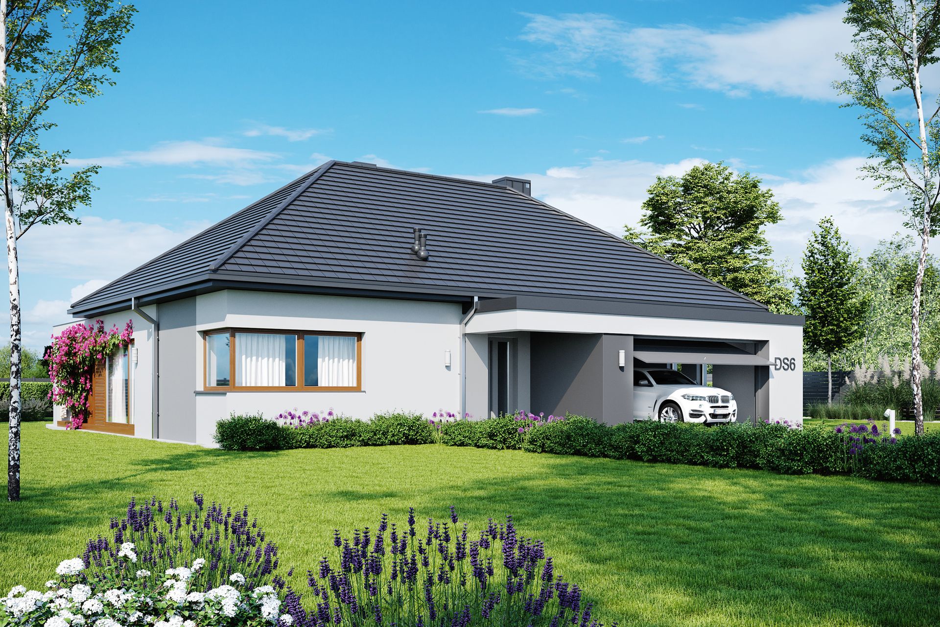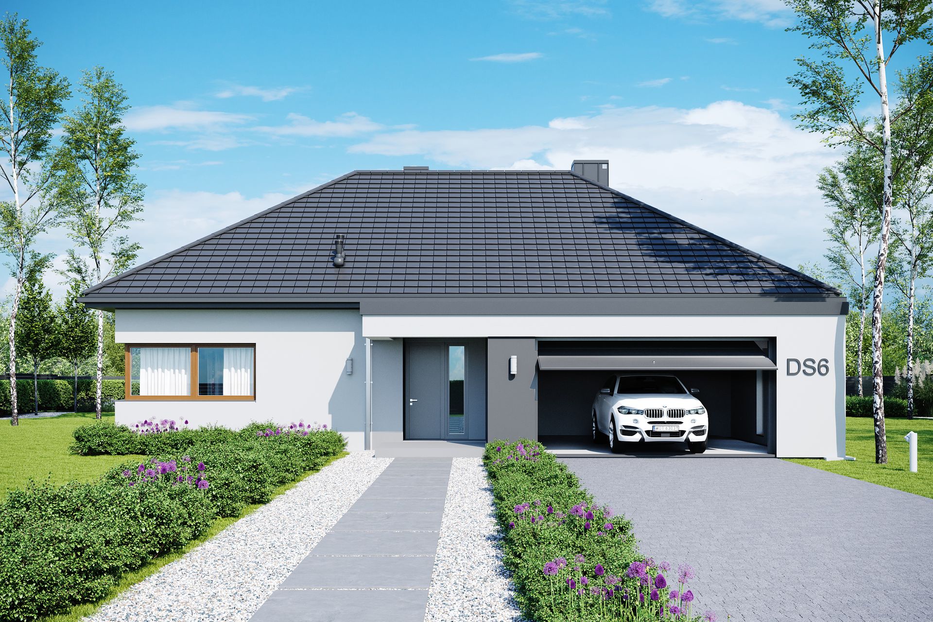 DomStudio 06 to komfortowy dom parterowy, idealny dla cztero- lub pięcioosobowej rodziny ceniącej wygodę życia na jednym poziomie. Funkcjonalny układ pomieszczeń, wkomponowany w tradycyjną bryłę z dwustanowiskowym garażem, tworzy spójną i elegancką przestrzeń do życia.