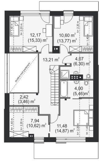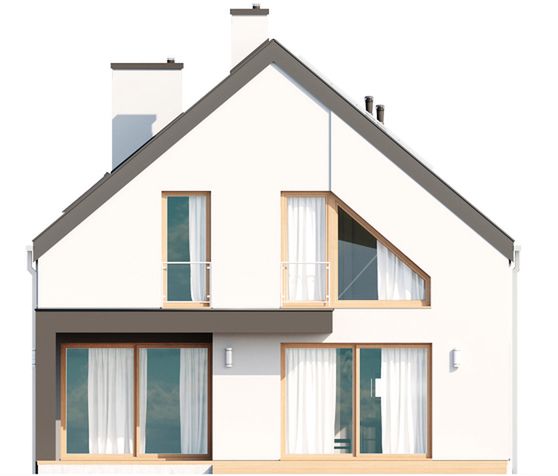 Graficzne opracowanie rzutów poglądowych widocznych na karcie projektu zostało wykonane przez Extradom.pl. Prezentowane przez Extradom.pl wizualizacje wykonane zostały przez autora projektu i należy poczytywać je jedynie za przykład i propozycję wykończenia, wizję architektoniczną autora projektu. Ostateczne wykończenie budynku może nastąpić na wiele sposobów. Szczegółowe rozwiązania zastosowane w oferowanej dokumentacji - w tym również ilość, lokalizacje i wygląd okien, drzwi, kominów - mogą w niewielkim stopniu różnić się od prezentowanej wizualizacji budynku.