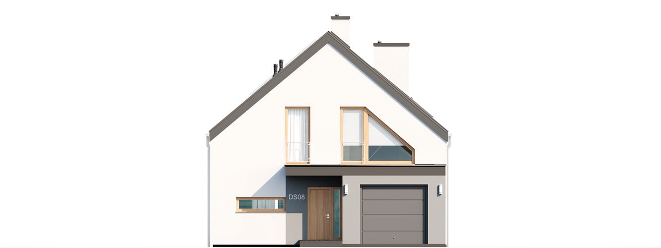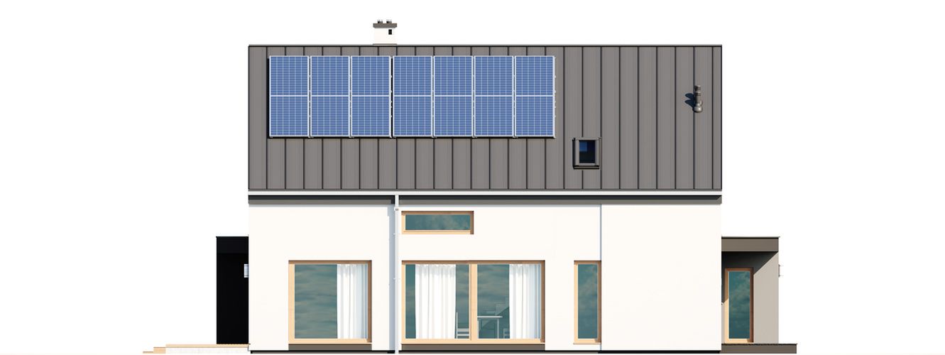 Graficzne opracowanie rzutów poglądowych widocznych na karcie projektu zostało wykonane przez Extradom.pl. Prezentowane przez Extradom.pl wizualizacje wykonane zostały przez autora projektu i należy poczytywać je jedynie za przykład i propozycję wykończenia, wizję architektoniczną autora projektu. Ostateczne wykończenie budynku może nastąpić na wiele sposobów. Szczegółowe rozwiązania zastosowane w oferowanej dokumentacji - w tym również ilość, lokalizacje i wygląd okien, drzwi, kominów - mogą w niewielkim stopniu różnić się od prezentowanej wizualizacji budynku.