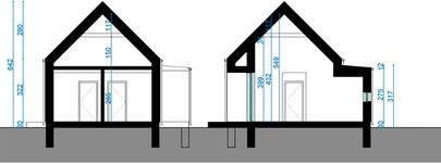 Fundamenty: ławy żelbetowe. Ściany konstrukcja: szkielet drewniany. Ściany elewacja: tynk + drewno. Stropy: szkielet drewniany. Dach konstrukcja: więźba drewniana krokwiowo-jętkowa. Dach pokrycie: blacha stalowa cynkowana powlekana na rąbek stojący. Schody: brak. Ogrzewanie kocioł: pompa ciepła + wentylacja mechaniczna z odzyskiem ciepła. Ogrzewanie grzejniki: ogrzewanie podłogowe.