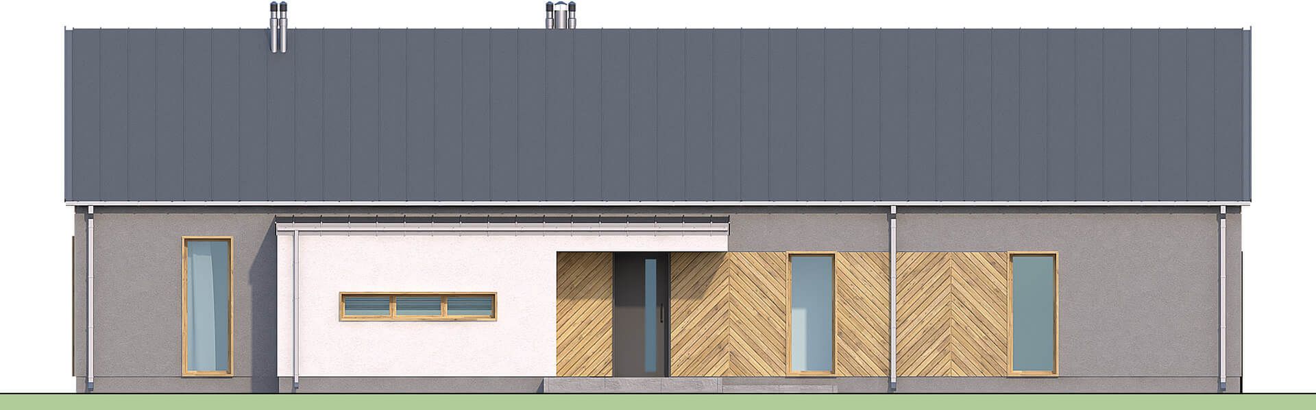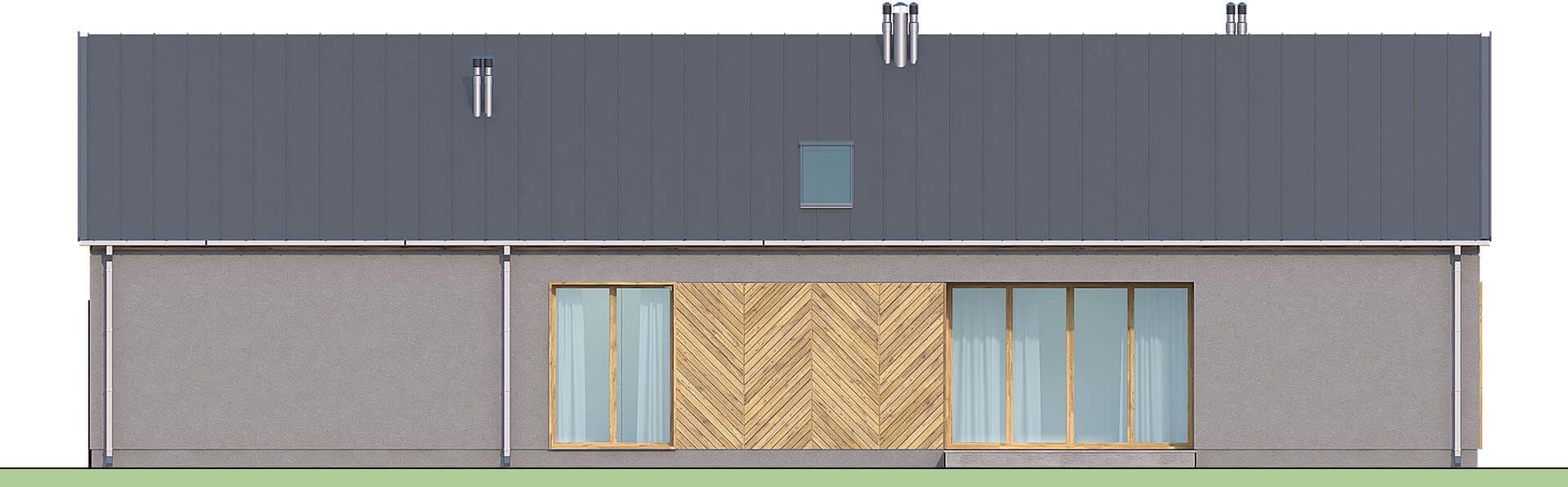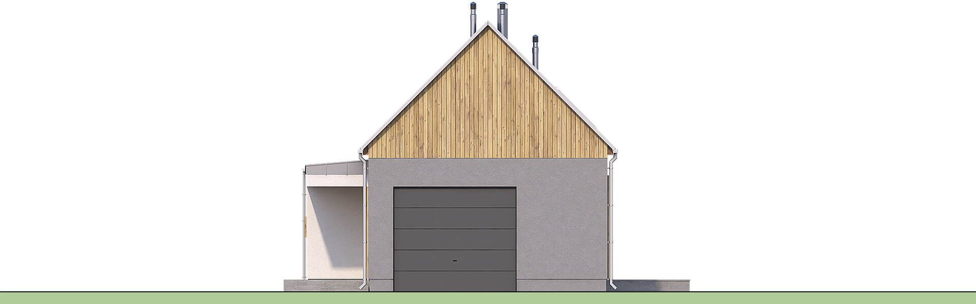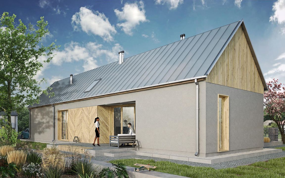 Graficzne opracowanie rzutów poglądowych widocznych na karcie projektu zostało wykonane przez Extradom.pl. Prezentowane przez Extradom.pl wizualizacje wykonane zostały przez autora projektu i należy poczytywać je jedynie za przykład i propozycję wykończenia, wizję architektoniczną autora projektu. Ostateczne wykończenie budynku może nastąpić na wiele sposobów. Szczegółowe rozwiązania zastosowane w oferowanej dokumentacji - w tym również ilość, lokalizacje i wygląd okien, drzwi, kominów - mogą w niewielkim stopniu różnić się od prezentowanej wizualizacji budynku.