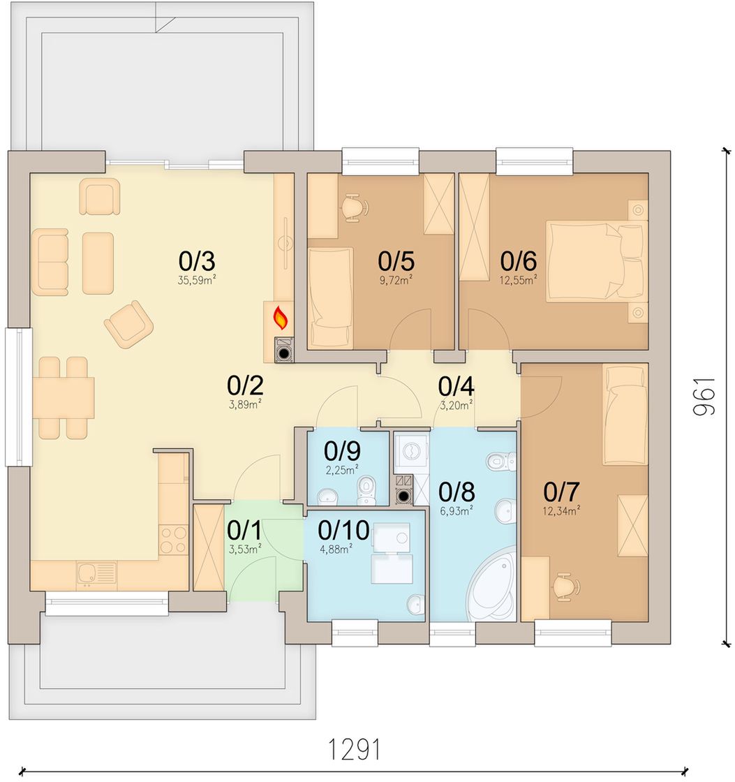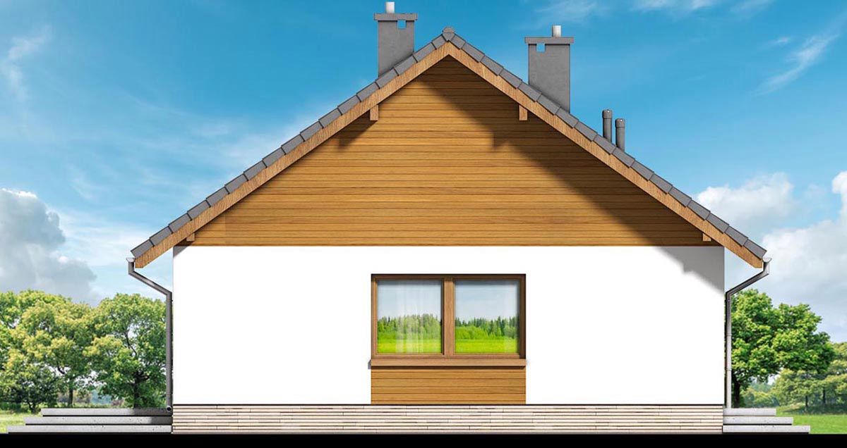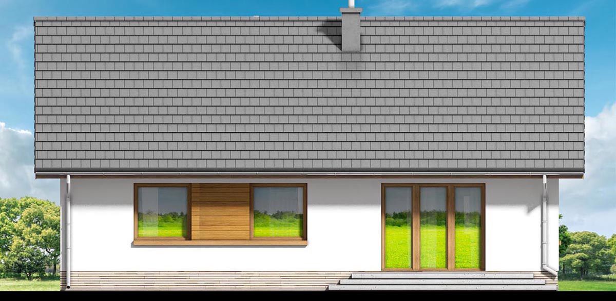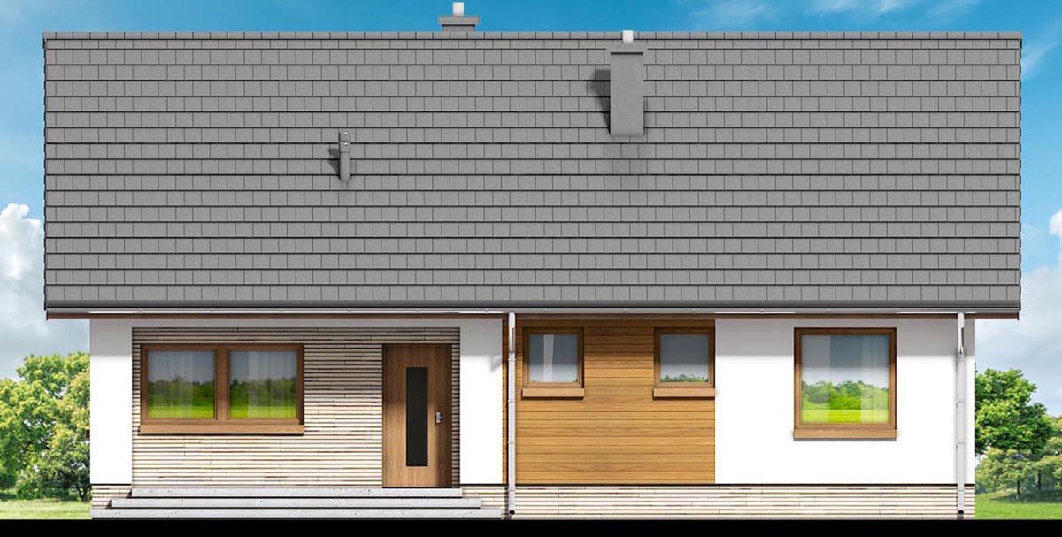 Graficzne opracowanie rzutów poglądowych widocznych na karcie projektu zostało wykonane przez Extradom.pl. Prezentowane przez Extradom.pl wizualizacje wykonane zostały przez autora projektu i należy poczytywać je jedynie za przykład i propozycję wykończenia, wizję architektoniczną autora projektu. Ostateczne wykończenie budynku może nastąpić na wiele sposobów. Szczegółowe rozwiązania zastosowane w oferowanej dokumentacji - w tym również ilość, lokalizacje i wygląd okien, drzwi, kominów - mogą w niewielkim stopniu różnić się od prezentowanej wizualizacji budynku.