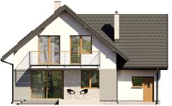 Graficzne opracowanie rzutów poglądowych widocznych na karcie projektu zostało wykonane przez Extradom.pl. Prezentowane przez Extradom.pl wizualizacje wykonane zostały przez autora projektu i należy poczytywać je jedynie za przykład i propozycję wykończenia, wizję architektoniczną autora projektu. Ostateczne wykończenie budynku może nastąpić na wiele sposobów. Szczegółowe rozwiązania zastosowane w oferowanej dokumentacji - w tym również ilość, lokalizacje i wygląd okien, drzwi, kominów - mogą w niewielkim stopniu różnić się od prezentowanej wizualizacji budynku.