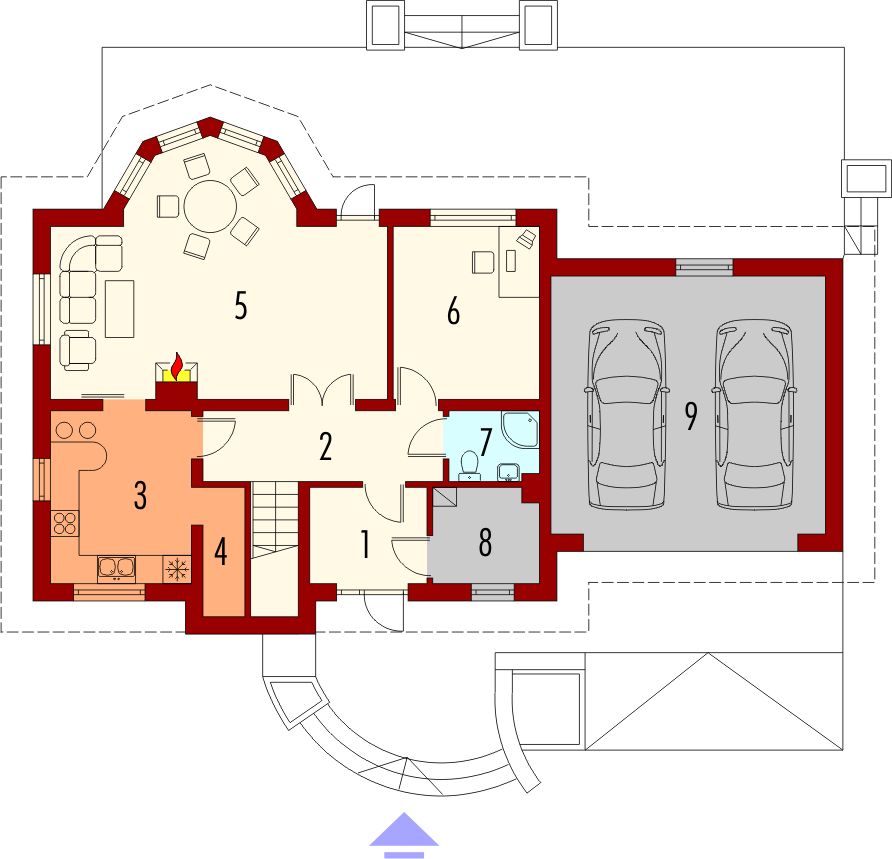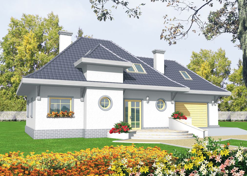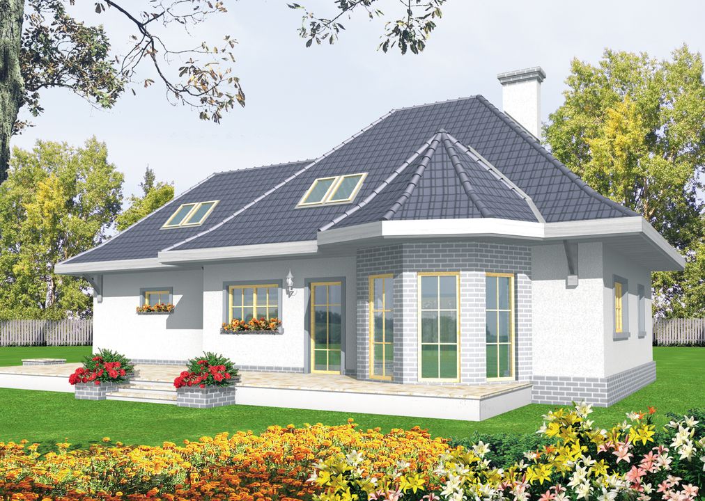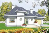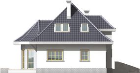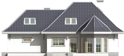 Graficzne opracowanie rzutów poglądowych widocznych na karcie projektu zostało wykonane przez Extradom.pl. Prezentowane przez Extradom.pl wizualizacje wykonane zostały przez autora projektu i należy poczytywać je jedynie za przykład i propozycję wykończenia, wizję architektoniczną autora projektu. Ostateczne wykończenie budynku może nastąpić na wiele sposobów. Szczegółowe rozwiązania zastosowane w oferowanej dokumentacji - w tym również ilość, lokalizacje i wygląd okien, drzwi, kominów - mogą w niewielkim stopniu różnić się od prezentowanej wizualizacji budynku.