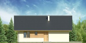 Graficzne opracowanie rzutów poglądowych widocznych na karcie projektu zostało wykonane przez Extradom.pl. Prezentowane przez Extradom.pl wizualizacje wykonane zostały przez autora projektu i należy poczytywać je jedynie za przykład i propozycję wykończenia, wizję architektoniczną autora projektu. Ostateczne wykończenie budynku może nastąpić na wiele sposobów. Szczegółowe rozwiązania zastosowane w oferowanej dokumentacji - w tym również ilość, lokalizacje i wygląd okien, drzwi, kominów - mogą w niewielkim stopniu różnić się od prezentowanej wizualizacji budynku.