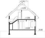 Graficzne opracowanie rzutów poglądowych widocznych na karcie projektu zostało wykonane przez Extradom.pl. Prezentowane przez Extradom.pl wizualizacje wykonane zostały przez autora projektu i należy poczytywać je jedynie za przykład i propozycję wykończenia, wizję architektoniczną autora projektu. Ostateczne wykończenie budynku może nastąpić na wiele sposobów. Szczegółowe rozwiązania zastosowane w oferowanej dokumentacji - w tym również ilość, lokalizacje i wygląd okien, drzwi, kominów - mogą w niewielkim stopniu różnić się od prezentowanej wizualizacji budynku.