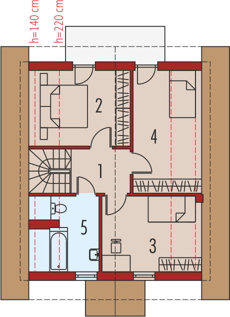Ściany zewnętrzne: murowane, beton komórkowy YTONG 36,5 m. Strop: międzypiętrowy gęstożebrowy Teriva. Dach: konstrukcja drewniana, ocieplenie wełna mineralna 23m, dachówka ceramiczna lub cementowa. Inne: schody wewnętrzne drewniane. Ogrzewanie: kocioł gazowy kondensacyjny, rozprowadzenie ciepła: grzejniki. Wentylacja: grawitacyjna. Elewacje: tynk cienkowarstwowy mineralny. Stolarka: drewniana, PVC lub aluminiowa.