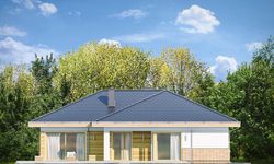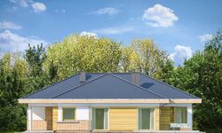 Graficzne opracowanie rzutów poglądowych widocznych na karcie projektu zostało wykonane przez Extradom.pl. Prezentowane przez Extradom.pl wizualizacje wykonane zostały przez autora projektu i należy poczytywać je jedynie za przykład i propozycję wykończenia, wizję architektoniczną autora projektu. Ostateczne wykończenie budynku może nastąpić na wiele sposobów. Szczegółowe rozwiązania zastosowane w oferowanej dokumentacji - w tym również ilość, lokalizacje i wygląd okien, drzwi, kominów - mogą w niewielkim stopniu różnić się od prezentowanej wizualizacji budynku.