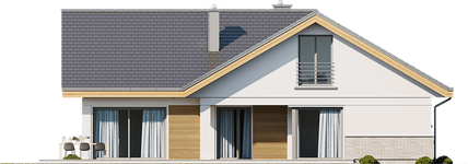 Graficzne opracowanie rzutów poglądowych widocznych na karcie projektu zostało wykonane przez Extradom.pl. Prezentowane przez Extradom.pl wizualizacje wykonane zostały przez autora projektu i należy poczytywać je jedynie za przykład i propozycję wykończenia, wizję architektoniczną autora projektu. Ostateczne wykończenie budynku może nastąpić na wiele sposobów. Szczegółowe rozwiązania zastosowane w oferowanej dokumentacji - w tym również ilość, lokalizacje i wygląd okien, drzwi, kominów - mogą w niewielkim stopniu różnić się od prezentowanej wizualizacji budynku.