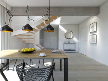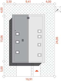Graficzne opracowanie rzutów poglądowych widocznych na karcie projektu zostało wykonane przez Extradom.pl. Prezentowane przez Extradom.pl wizualizacje wykonane zostały przez autora projektu i należy poczytywać je jedynie za przykład i propozycję wykończenia, wizję architektoniczną autora projektu. Ostateczne wykończenie budynku może nastąpić na wiele sposobów. Szczegółowe rozwiązania zastosowane w oferowanej dokumentacji - w tym również ilość, lokalizacje i wygląd okien, drzwi, kominów - mogą w niewielkim stopniu różnić się od prezentowanej wizualizacji budynku.
