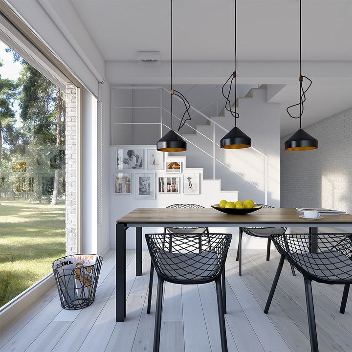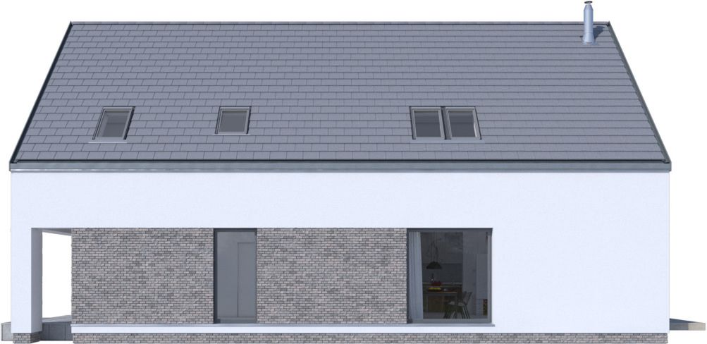 Graficzne opracowanie rzutów poglądowych widocznych na karcie projektu zostało wykonane przez Extradom.pl. Prezentowane przez Extradom.pl wizualizacje wykonane zostały przez autora projektu i należy poczytywać je jedynie za przykład i propozycję wykończenia, wizję architektoniczną autora projektu. Ostateczne wykończenie budynku może nastąpić na wiele sposobów. Szczegółowe rozwiązania zastosowane w oferowanej dokumentacji - w tym również ilość, lokalizacje i wygląd okien, drzwi, kominów - mogą w niewielkim stopniu różnić się od prezentowanej wizualizacji budynku.