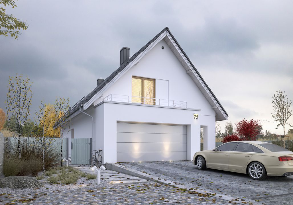 Graficzne opracowanie rzutów poglądowych widocznych na karcie projektu zostało wykonane przez Extradom.pl. Prezentowane przez Extradom.pl wizualizacje wykonane zostały przez autora projektu i należy poczytywać je jedynie za przykład i propozycję wykończenia, wizję architektoniczną autora projektu. Ostateczne wykończenie budynku może nastąpić na wiele sposobów. Szczegółowe rozwiązania zastosowane w oferowanej dokumentacji - w tym również ilość, lokalizacje i wygląd okien, drzwi, kominów - mogą w niewielkim stopniu różnić się od prezentowanej wizualizacji budynku.