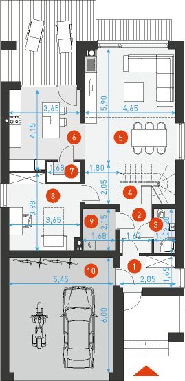 Projekt stanowi aktualną i pełną dokumentację zawierającą część architektoniczno - budowlaną, konstrukcyjną wykonawczą, instalacji wewnętrznych, elektrycznych i teletechnicznych, charakterystykę energetyczną oraz uprawnienia projektantów. Dokumentacja zabezpieczona jest specjalną plombą, której usunięcie uniemożliwi jej zwrot oraz wymianę. Zapraszamy do zamówienia przed zakupem rysunków szczegółowych projektu oraz analizy posiadanej działki w celu upewnienia się, że wybrany projekt domu idealnie na nią pasuje.