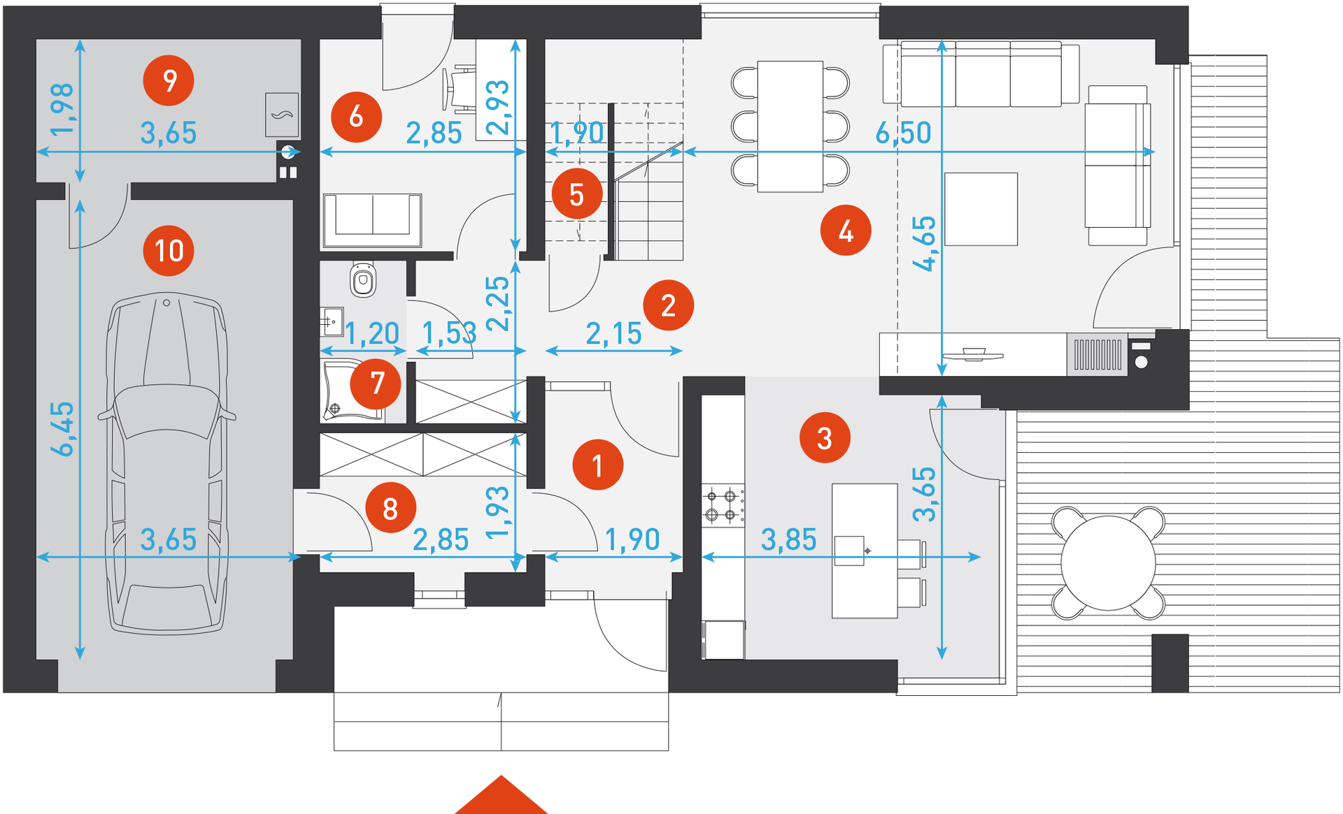 Projekt stanowi aktualną i pełną dokumentację zawierającą część architektoniczno - budowlaną, konstrukcyjną wykonawczą, instalacji wewnętrznych, elektrycznych i teletechnicznych, charakterystykę energetyczną oraz uprawnienia projektantów. Dokumentacja zabezpieczona jest specjalną plombą, której usunięcie uniemożliwi jej zwrot oraz wymianę. Zapraszamy do zamówienia przed zakupem rysunków szczegółowych projektu oraz analizy posiadanej działki w celu upewnienia się, że wybrany projekt domu idealnie na nią pasuje.