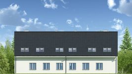 Graficzne opracowanie rzutów poglądowych widocznych na karcie projektu zostało wykonane przez Extradom.pl. Prezentowane przez Extradom.pl wizualizacje wykonane zostały przez autora projektu i należy poczytywać je jedynie za przykład i propozycję wykończenia, wizję architektoniczną autora projektu. Ostateczne wykończenie budynku może nastąpić na wiele sposobów. Szczegółowe rozwiązania zastosowane w oferowanej dokumentacji - w tym również ilość, lokalizacje i wygląd okien, drzwi, kominów - mogą w niewielkim stopniu różnić się od prezentowanej wizualizacji budynku.