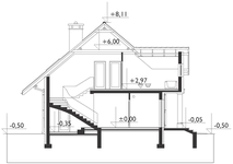 Technologia i konstrukcja: murowana – beton komórkowy. Ściany zewnętrzne: bloczki YTONG gr. 24cm + docieplenie płyty FASROCK MAX gr. 15cm. Ściany wewnętrzne: konstrukcyjne: bloczki SILKA gr. 24cm; działowe: bloczki YTONG INTERIO gr. 11,5cm. Strop: żelbetowy. Konstrukcja dachu: drewniana, jętkowa. Rodzaj schodów: żelbetowe. Typ ogrzewania: kocioł na gaz. Aneks na paliwo stałe: dostępny (zapytaj o cenę). Pokrycie dachu: dachówka cementowa BRAAS. Elewacja: tynki silikonowe, silikatowe, mineralne BOLIX.