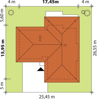Graficzne opracowanie rzutów poglądowych widocznych na karcie projektu zostało wykonane przez Extradom.pl. Prezentowane przez Extradom.pl wizualizacje wykonane zostały przez autora projektu i należy poczytywać je jedynie za przykład i propozycję wykończenia, wizję architektoniczną autora projektu. Ostateczne wykończenie budynku może nastąpić na wiele sposobów. Szczegółowe rozwiązania zastosowane w oferowanej dokumentacji - w tym również ilość, lokalizacje i wygląd okien, drzwi, kominów - mogą w niewielkim stopniu różnić się od prezentowanej wizualizacji budynku.