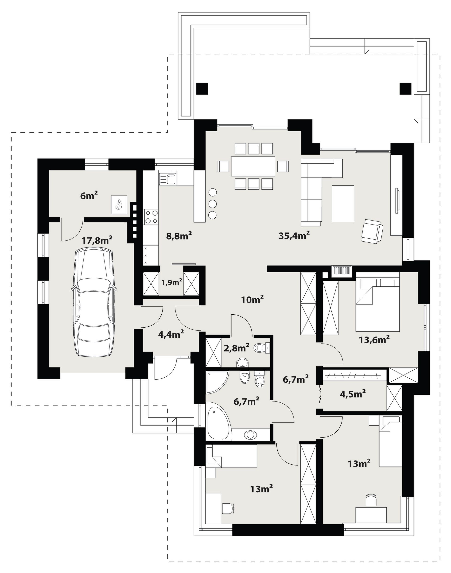 PROJEKT Z BUDOWĄ Istnieje możliwość zaadaptowania tego projektu do technologii prefabrykowanej/modułowej i budowy nawet w 6 miesięcy ze stałym kosztem budowy