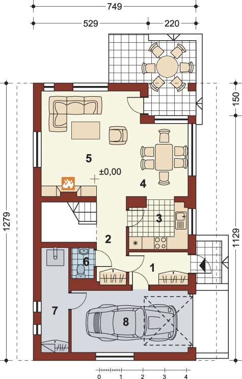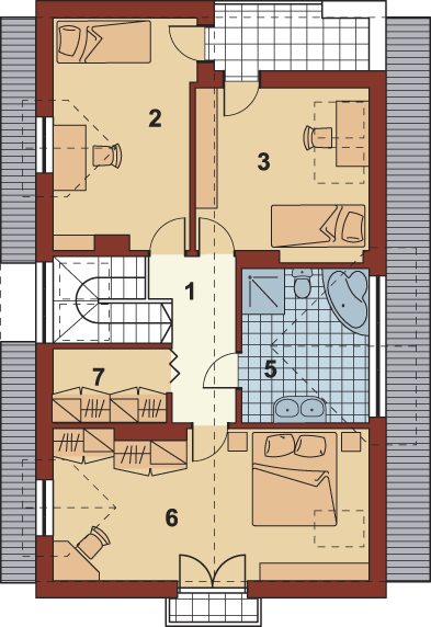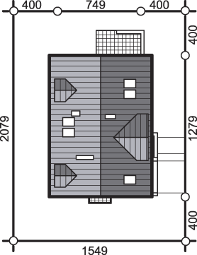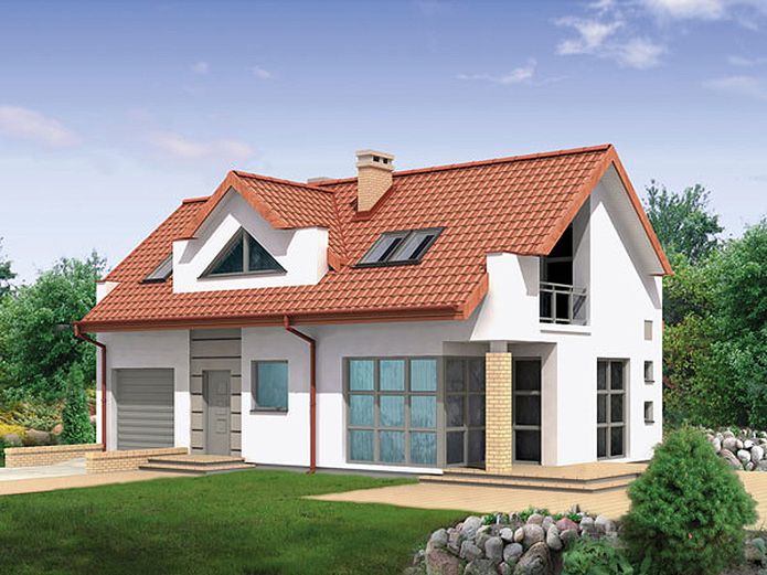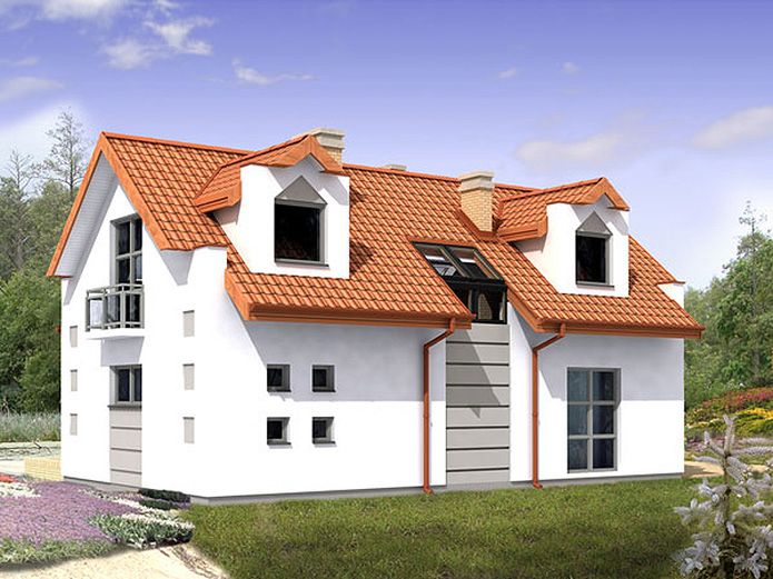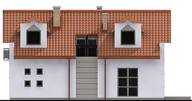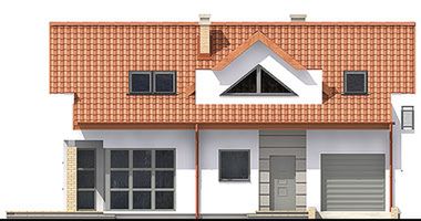 Graficzne opracowanie rzutów poglądowych widocznych na karcie projektu zostało wykonane przez Extradom.pl. Prezentowane przez Extradom.pl wizualizacje wykonane zostały przez autora projektu i należy poczytywać je jedynie za przykład i propozycję wykończenia, wizję architektoniczną autora projektu. Ostateczne wykończenie budynku może nastąpić na wiele sposobów. Szczegółowe rozwiązania zastosowane w oferowanej dokumentacji - w tym również ilość, lokalizacje i wygląd okien, drzwi, kominów - mogą w niewielkim stopniu różnić się od prezentowanej wizualizacji budynku.